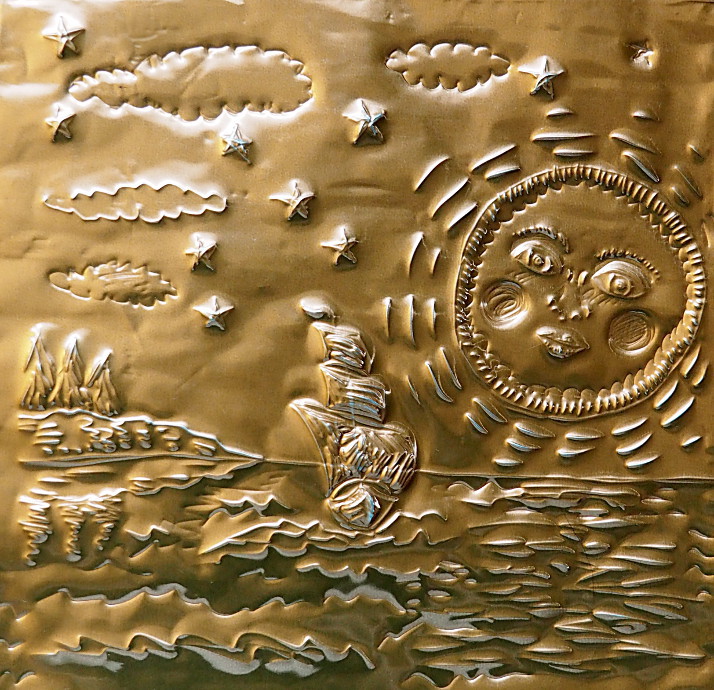 I have done both themed (Valentine’s Day) lessons using the foil, and have had more open ended times. I like to sketch things out on a piece of paper first, brainstorm some ideas, and then impress it on the foil. What’s great is that you can make an impression on the opposite side for a relief, and then on the front for the intaglio effect.